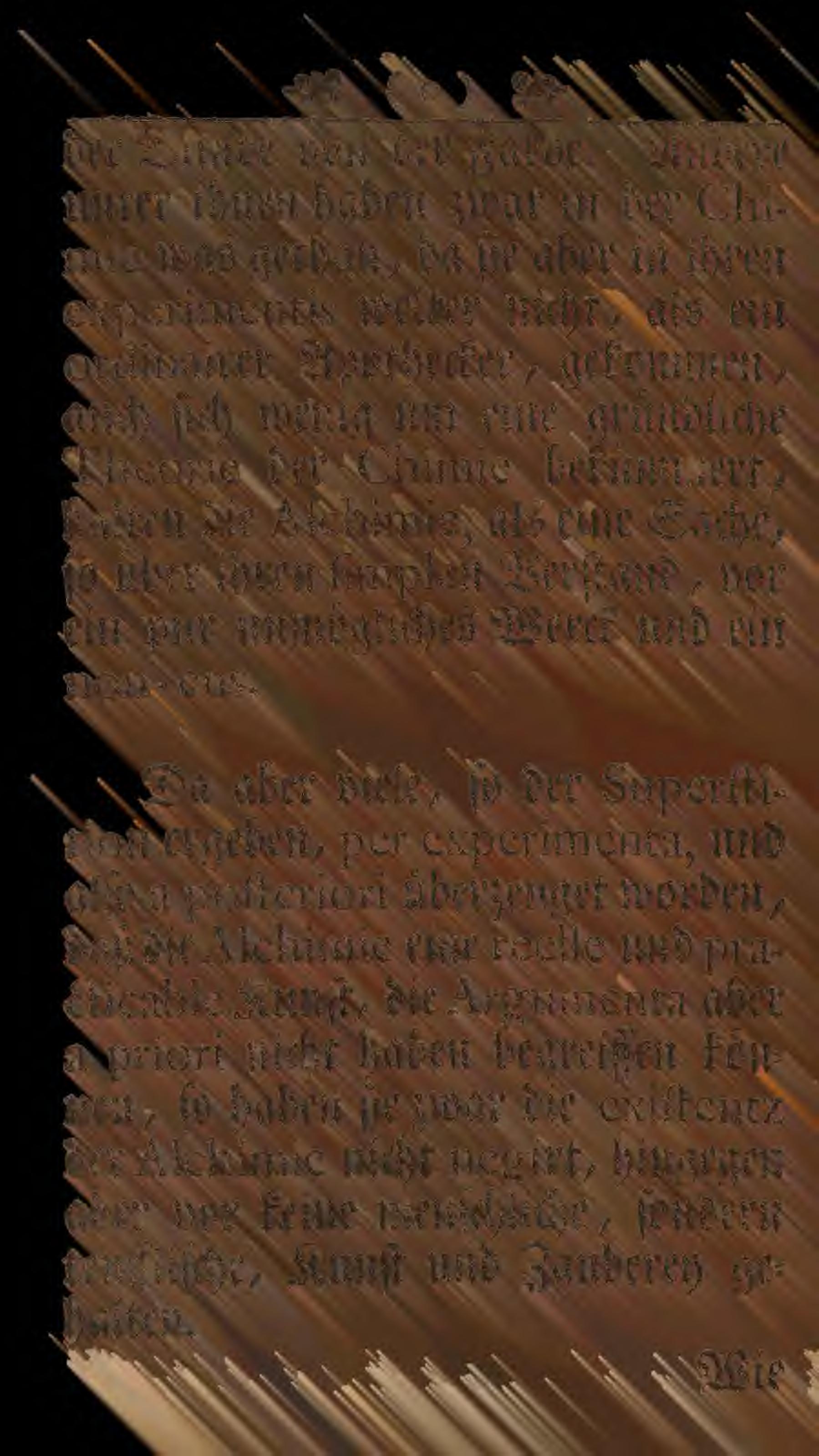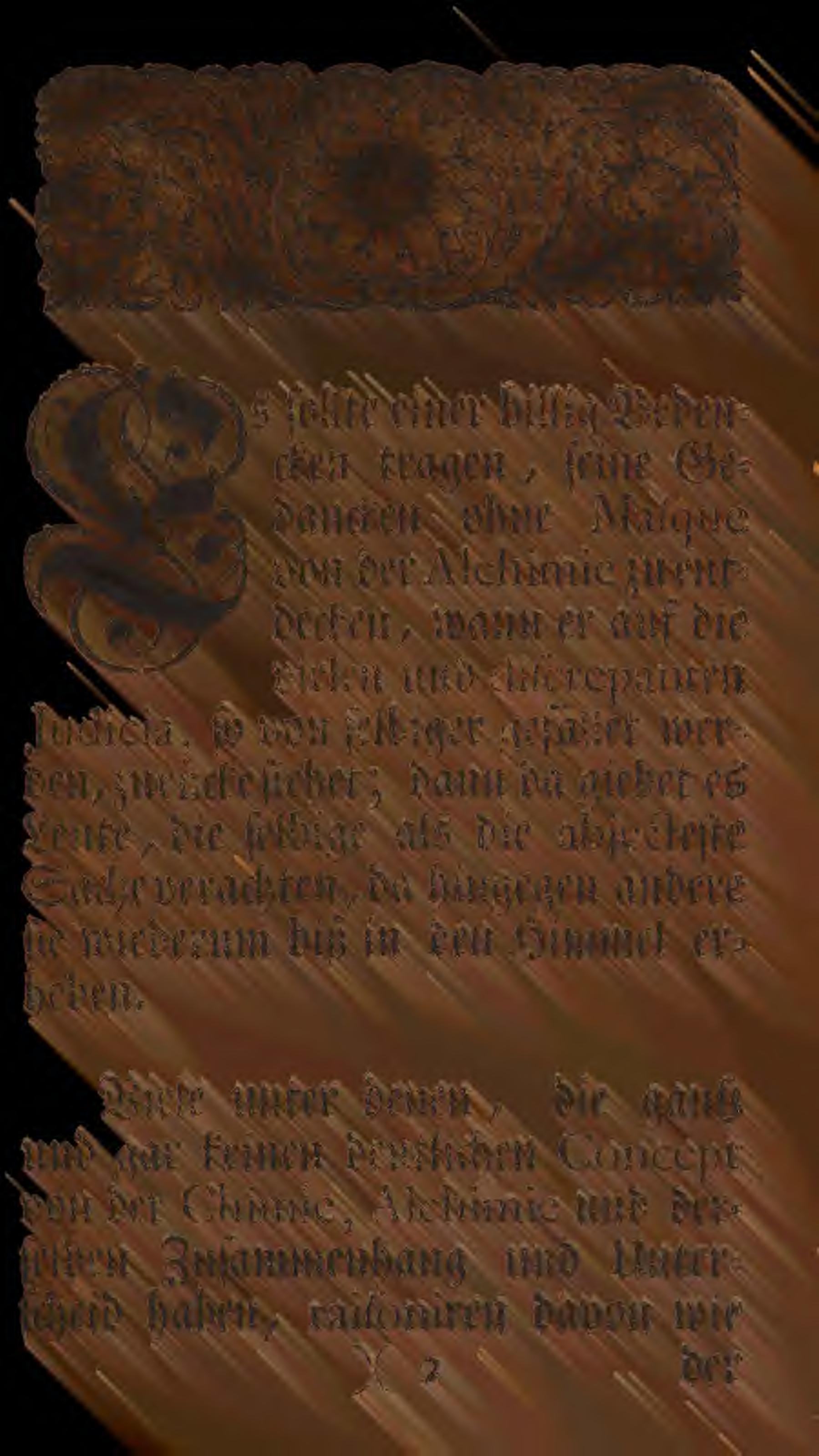 Vernünfftige Gedancken vom Gold-Machen. Dies ist eine 8 Jahre spätere Ausgabe der „Einleitung zur Alchimie“ mit neuem Titel, aber unverändertem Inhalt. Die Vorrede von Christian Gottfried Stenssels wurde hinzugefügt. Aus dem Inhalt: II. Von denen Einwürffen und Lästerungen wider die Alchimie; IV. Von den Fundamenten der Kunst; V. Von Experimenten der Kunst; VI. Von dem Alterthum der Kunst; VIII. Von den Requisitis eines künsstigen Künstlers; XI. Von der Universal-Materie, ofer von der Materie in Genere; XIII. Eximirte MineralienXVII. Von absonderlichen Arbeiten. Aus Wikipedia: “Georg Wolfgang Wedel, in Drucken meist Wolffgang (* 12. November 1645 in Golßen in der Niederlausitz; † 6. September 1721 in Jena) war ein deutscher Mediziner, Leibarzt und Alchemist.”