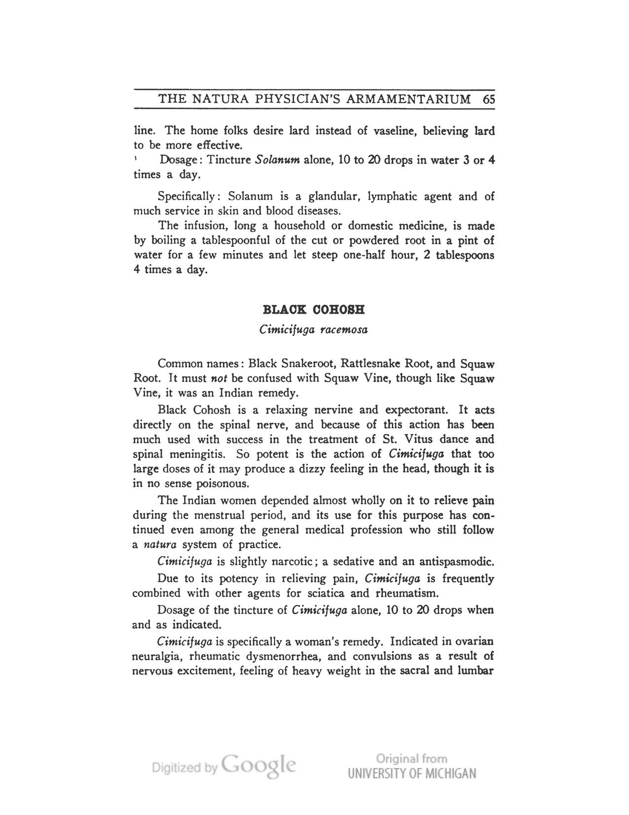 4. This is not literally true. With few exceptions all the agents of which he made tinctures, fluid extracts, and powders had been used correctly and successfully by the crudely and unfairly dubbed "old wives" of Europe and theIndian women in America. All the physicians did was to refine them, establish accurate doses, and by experience find new uses for them. It is high time that we begin to give credit where credit is due.