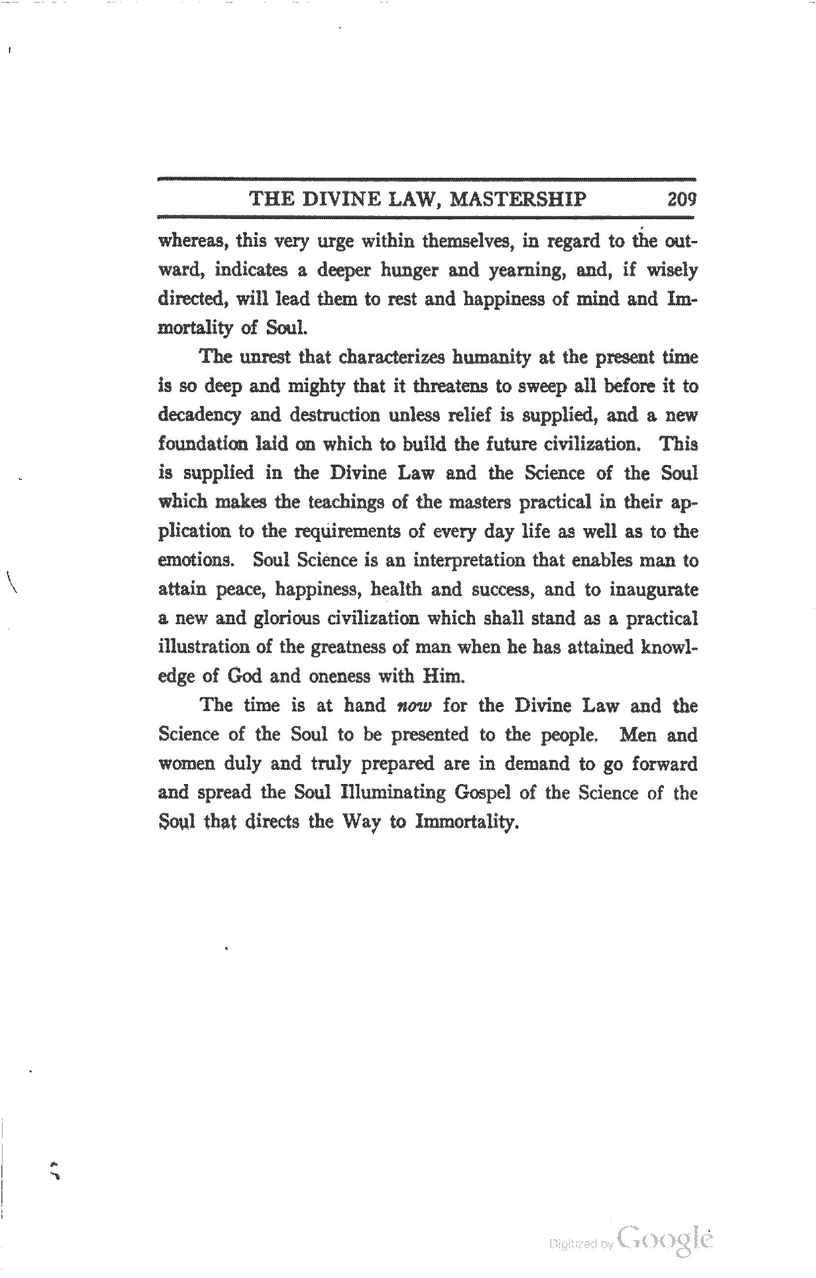 The time is at hand now for the Divine Law and the Science of the Soul to be to the Men and women and are in demand to go forward the Soul the Science of the the to Imlnortali1ty.