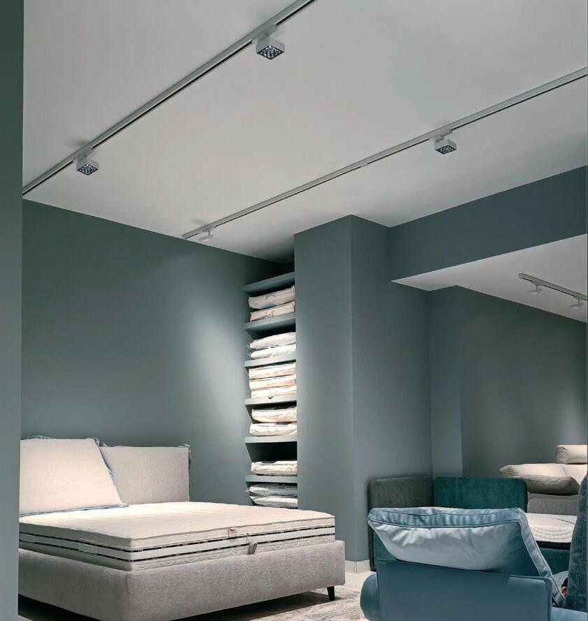 Rubin, downlight idéal pour créer des effets lumineux grâce aux différentes finitions esthétiques disponibles. La polyvalence de cette gamme est également assurée par la possibilité de sélectionner 3 températures de couleur différentes (3000K-4000K-5700K) sur deux formats de puissance, ce qui permet d’adapter l’installation aux exigences spécifiques de chaque espace d’exposition.