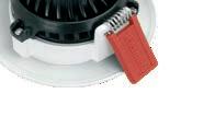 Equipement : les downlights sont équipés d’étriers en acier galvanisé avec logement pour ressorts de fixation au faux-plafond.
