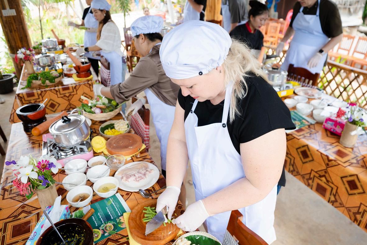 Meanwhile, in Sao Hai, we joined Tai Yuan and Lao Vieng women, as well as returning youth now training as cultural guides, in a series of heritagebased activities that celebrate and preserve local identity. From a forest ordination ceremony to Jekchoey rice processing and community-led cooking classes, each moment was a reflection of Sao Hai’s commitment to keeping cultural practices alive through tourism.