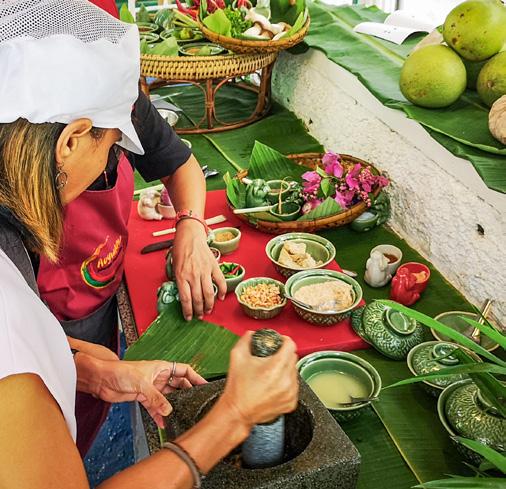 This five-hour tour will take you to a wholesale flower market, and a local Buddhist temple followed by a visit to a riverside restaurant on the outskirts of Bangkok where you will learn about Thai herbs, spices and why Thai people are obsessed with dipping sauces. Later, you will join the host in the kitchen to create three Thai signature dipping sauces that go well with meat, seafood and fruit before enjoying a delightful meal by the river.