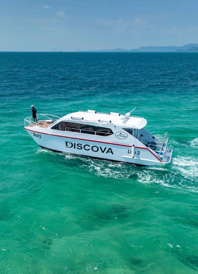 We also offer two Discova-branded and operated speedboats for use in Phuket, Thailand. They are larger than the average speedboat used there, and that means more seats are available, seats are forward-facing, and guests can experience greater comfort during rougher sea days.