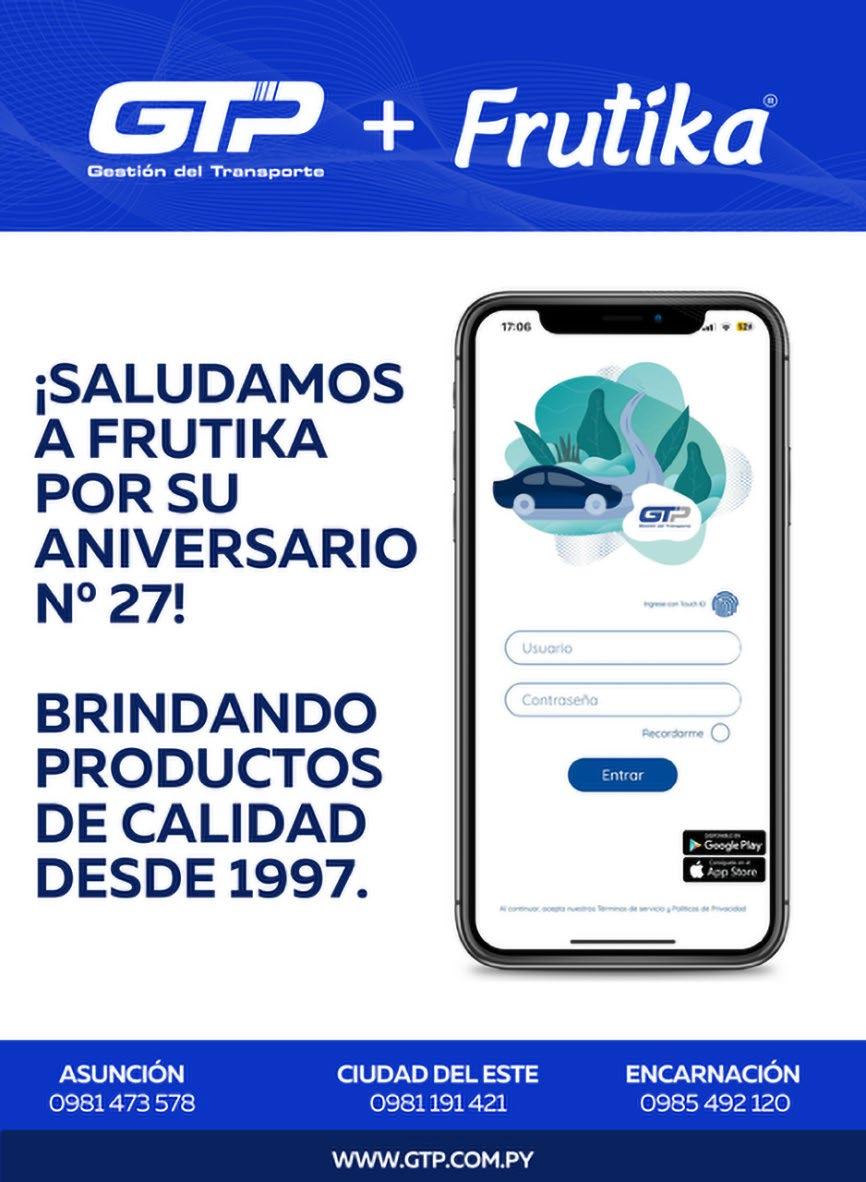 celebración de este momento y junto a nuestro Cliente Frutika agradecemos todo el trabajo desarrollado en estos años. Para nosotros como empresa proovedora es un verdadero orgullo ser parte de su historia y seguimos con el firme compromiso, de seguir avanzando juntos aportando a la construcción de una sociedad donde se valore el trabajo honesto y que dignifique a cada habitante de nuestro querido Paraguay" Felicidades y que sigan los éxitos!