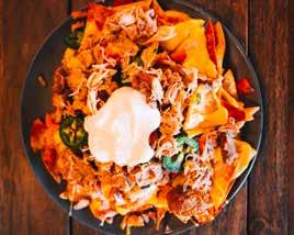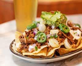 PCB PRETZEL BITES: FOUR SPENT BEER GRAIN HOUSE-MADE PRETZELS SERVED WITH SIREN’S CALL BEER CHEESE NACHOS: HOUSE-MADE CHIPS, SIREN’S CALL BEER CHEESE, PICO, GREEN ONION, JALAPEÑOS, SOUR CREAM; ADD CHICKEN, PORK OR TRI-TIP
