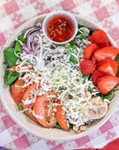 CHEF’S WEDGE SALAD: BABY HEIRLOOM TOMATOES, RED ONION, BACON STRIPS, HARD BOILED EGGS, BLUE CHEESE DRESSING