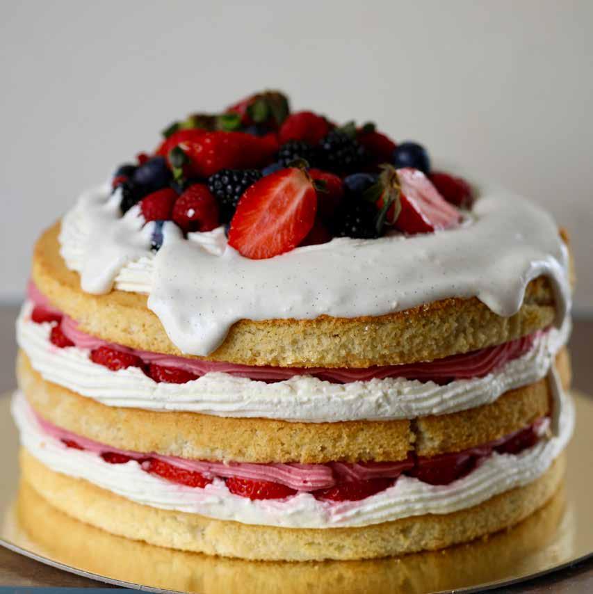 RASPBERRY ALMOND TORTE: ALMOND CAKE FILLED WITH PASTRY CREAM AND RASPBERRIES