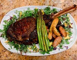 BONE-IN DRY-AGED USDA PRIME TOMAHAWK RIB-EYE: SERVED ON A 600-DEGREE PINK HIMALAYAN SALT BLOCK, SERVED WITH YOUR CHOICE OF TWO SIDES