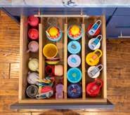 This may seem obvious, but everything needs a place. My Tupperware drawer is where my frustrations lie, and adding a dedicated lid container has greatly helped. Also, I liked the file folding system that Anna [Butler Gabriele] does for napkins/dish towels. I have incorporated it into my clothing organization in my dressers, rather than stacking.