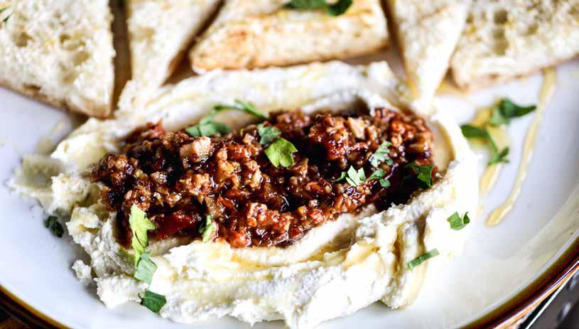 SHISHITO PEPPERS: BLACK PEPPER LABNEH, MISO GARLIC GLAZE, CHARRED LEMON, MARCONA ALMONDS