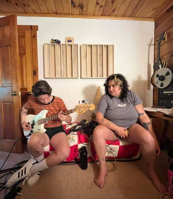 Me watching Larz lay down a bass track! Larz has played bass in Palehound since 2017 and even if I write a part, they always make it sound way sicker.