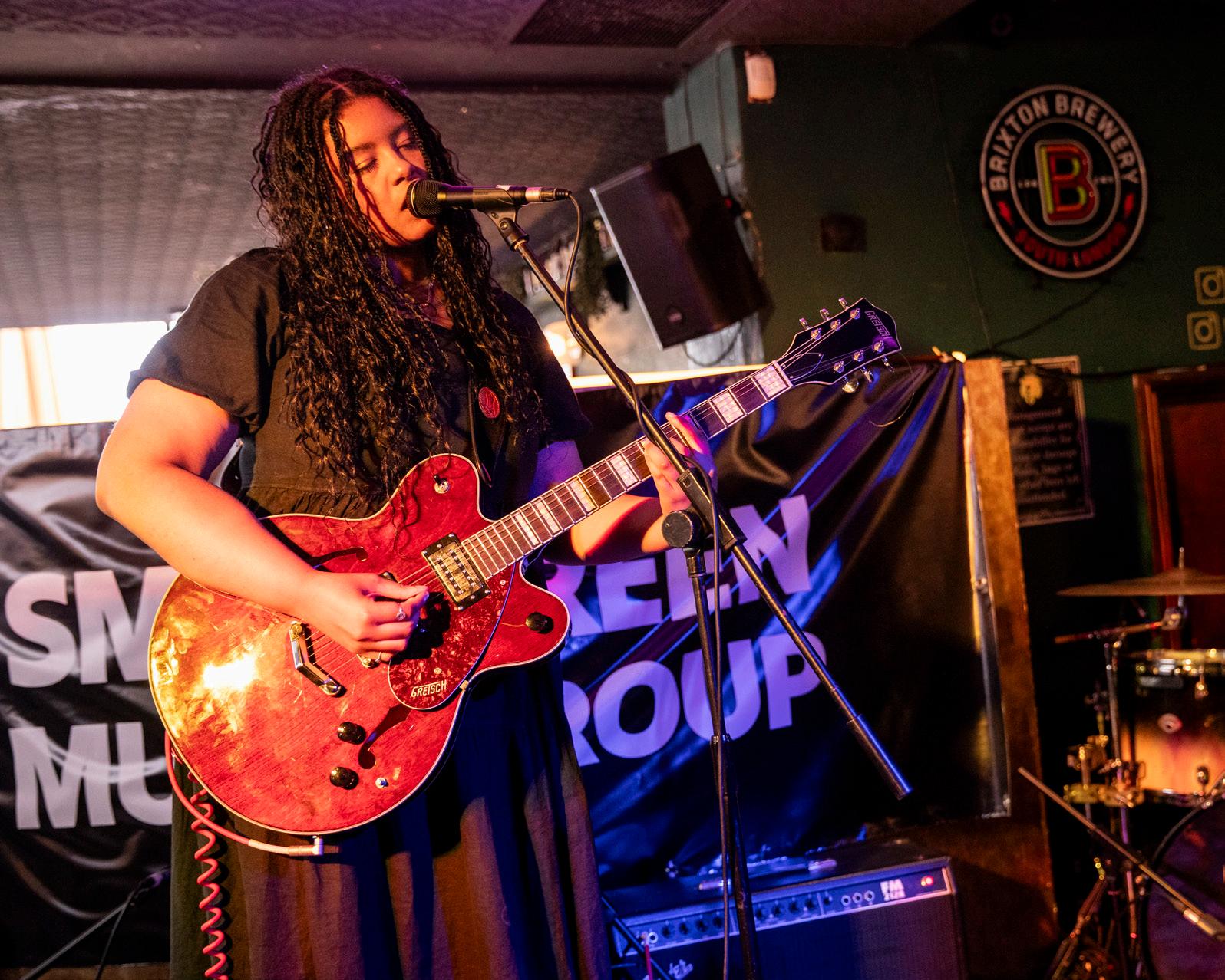 Southend-born Ellie Bleach deals in the sort of witty, narrative-driven piano melodrama that made Matt Maltese’s early work so immediately compelling. Recent EP ‘Leaving West Feldwood’ set itself in a noirish fctional town full of choice characters, and while her on stage set up – a fully feshed-out gang of fve – resembles more of a traditional indie band, there’s no doubt that Bleach’s wry tales and performative fourishes are the focus. In a midafternoon pub set at The Hope and Ruin, she’s magnetic; put her in her natural setting (jazz bar, candles, velvet), and she’ll be a star.