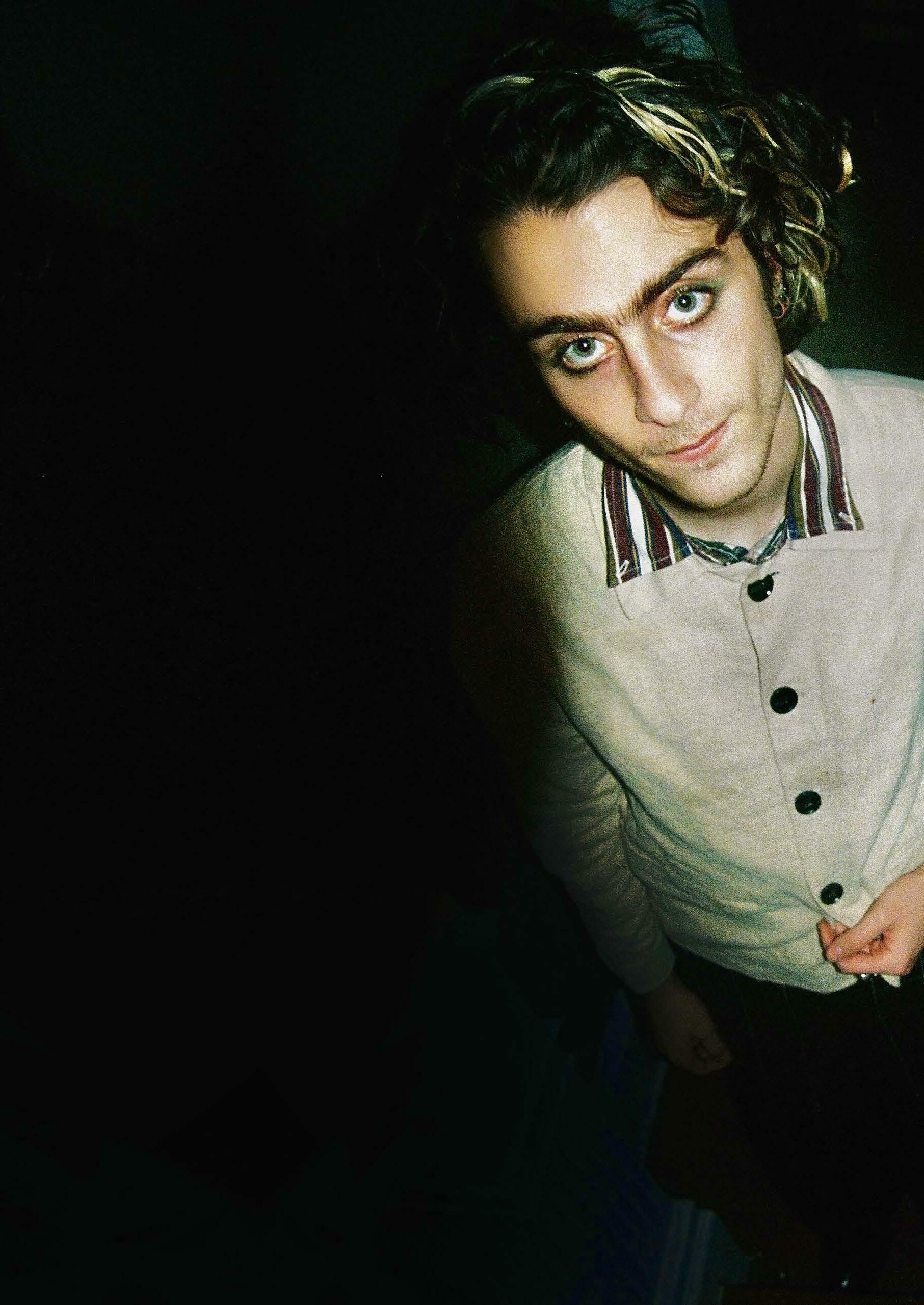 Today, we’re chatting with him over Zoom. He’s in Rome, on a break from filming Finalmente L’Alba, a new Saverio Costanzo movie co-starring Willem Defoe and Lily James. There’s no sign of his on-stage persona today: the wig’s gone, and he’s sat in his kitchen chomping on a cracker, sporting a Faux Real sweatshirt -