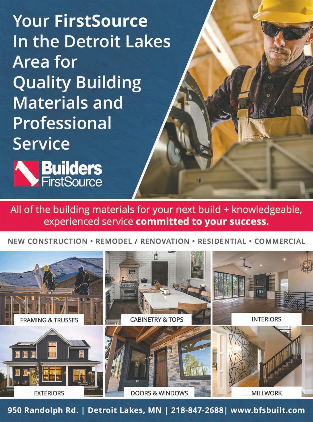 30 | Builders Home & Sport Show 2023 CONTACT US TO REQUEST A FREE QUOTE OR PROPOSAL 534 US HWY 59 | DETROIT LAKES, MN 56501 • Roll-off box service • Demolition services • Soil supply and delivery Making The Grade 218.847.7391 800.726.7643 www.houghinc.com Commercial • Residential • Industrial Painting • Drywall • Steel Stud Framing • Epoxy Flooring Insulation: Blow in, Fiberglass Batts, Spray Foam PH: 218-849-4714 of Detroit Lakes “The difference between DIY and do-it-for me? Basically, everything.” https://budgetblinds.com/detroitlakes 218-844-7052 FREE in-home consultation Shop for your home in your home Serving Detroit Lakes and the surrounding area