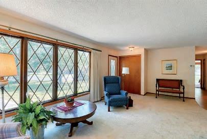 rectangular shape above the kitchen. While some walls separate the living and dining room from the sunroom, the entrance remains wide open. Then, as a visitor walks into the sunroom, they’re greeted with a vaulted ceiling and window, facing to look out at the gorgeous waters of Otter Tail Lake.