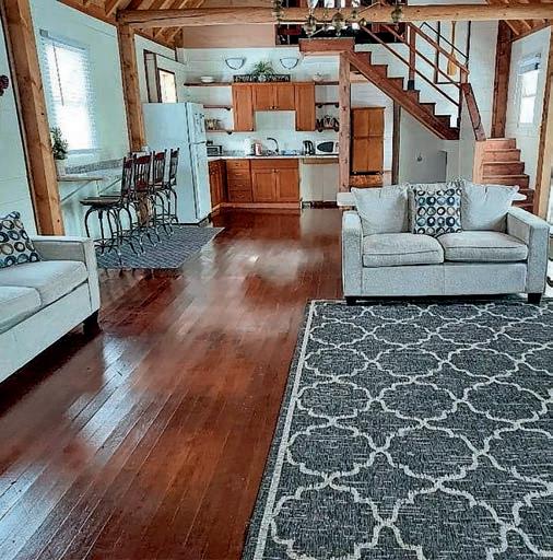 The interior of the church renovated into a cabin offers refurbished original floors and an open, flowing floor plan. Contributed / Engen family