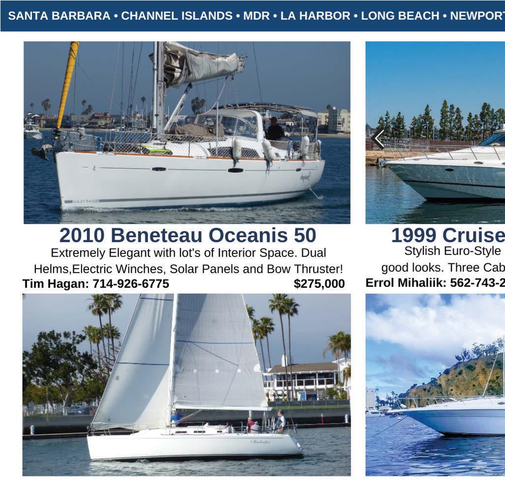 BUY A BOAT? NEED A SLIP? Yacht Haven Marina 310 834-6892 •