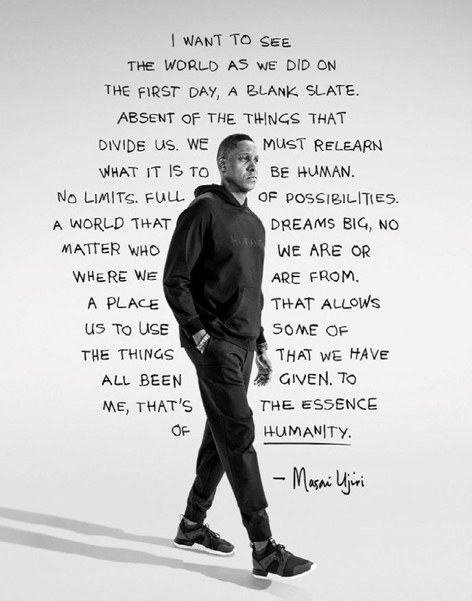 President and Giants of Africa co-founder Masai Ujiri and menswear brand Harry Rosen collaborated on a project focused on raising funds for charity, bringing new Black designers into the famed retailer, and ultimately reminding the world that there’s more that unites us than divides us. At the center of the collaboration was the idea of humanity, expressed through fashion — one of the many ways people choose to show who they are. A sevenpiece athleisure capsule designed by Ujiri and Canadian designer Patrick Assaraf features the word ‘HUMANITY’ in Ujiri’s handwriting.