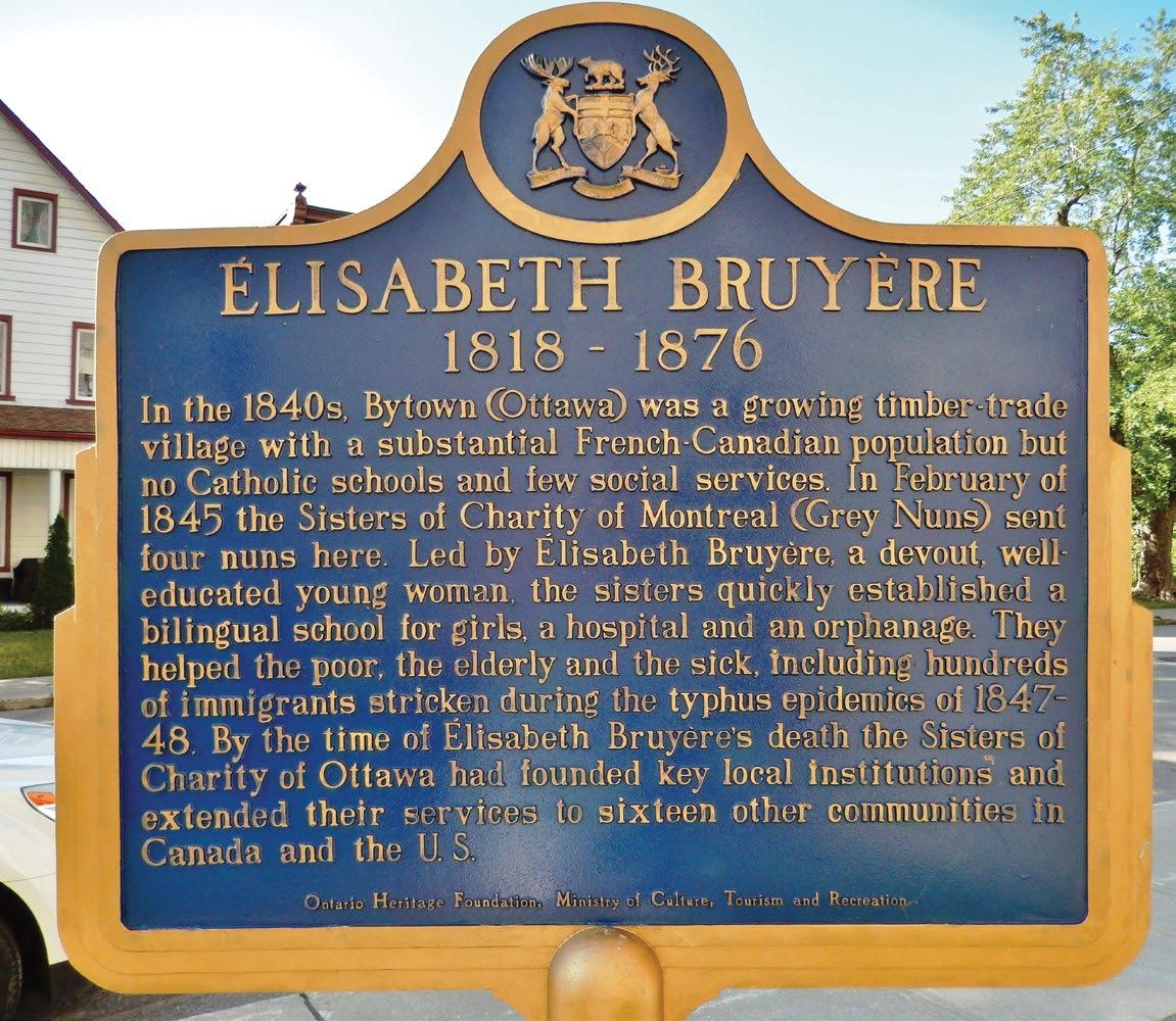 Led by Élisabeth Bruyère, a devout, welleducated young woman, the sisters quickly established a bilingual school for girls, a hospital and an orphanage. They helped the poor, the elderly and the sick, including hundreds of immigrants stricken during the typhus epidemics of 1847-48. By the time of Bruyère’s death the Sisters of Charity of Ottawa had founded key local institutions and extended their services to sixteen other communities in Canada and the U.S.