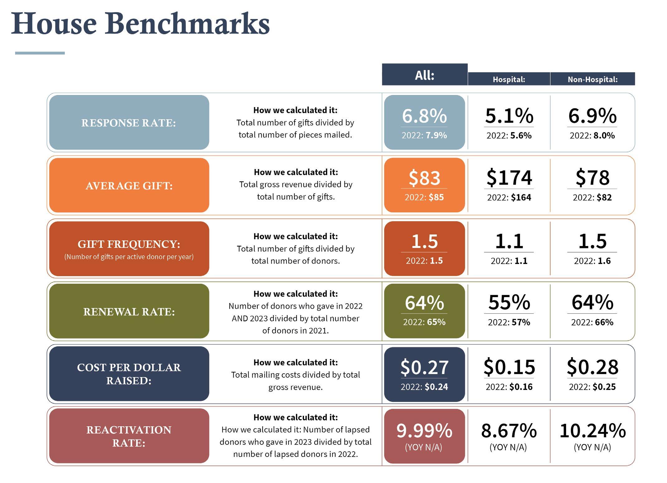 And lastly, we’ll caution you against comparing the 2023 Benchmarks report to any that came before it. The charities who participate change year-over-year, meaning the dataset does too. When you see us reference year-over-year changes, we’re referring to results.