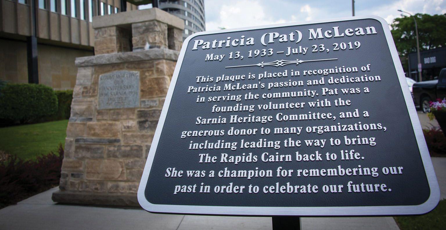 Recognizing a lifetime dedicated to volunteer work and the community’s heritage, in July of 2023 the City of Sarnia unveiled a plaque honouring Patricia McLean.