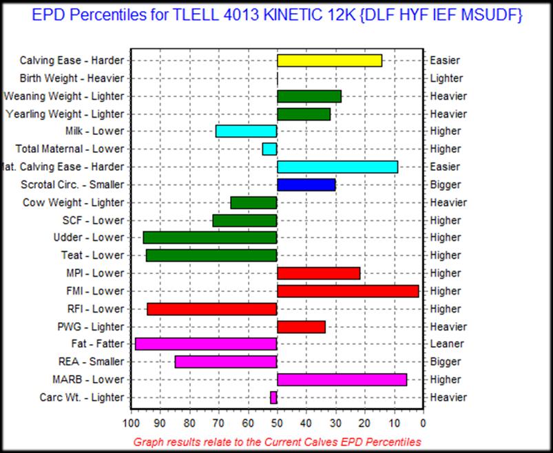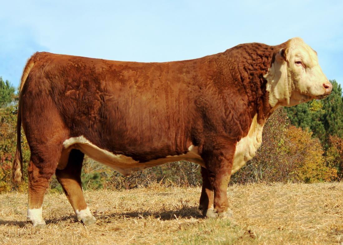 When compared to the average Hereford bull, he will improve calving ease, lower birth weights while also increasing weaning and yearling weights, rib eye, marbling and carcass