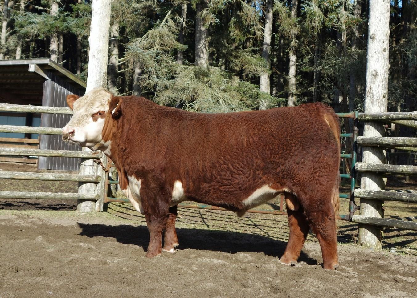 When compared to the average Hereford bull, he will improve calving ease, lower birth weights while also increasing weaning and yearling weights, marbling and carcass weights. His Feedlot Merit Index is in top 1% of the breed. 10 generations deep in Tlell breeding.