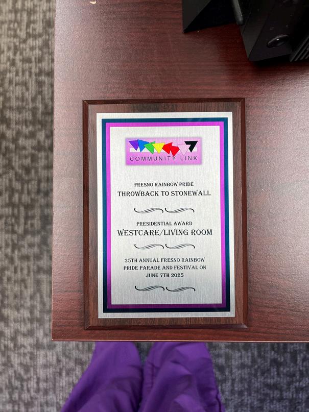 On Saturday, August 16, The Living Room was honored to be recognized with the President’s Award for our parade entry in the 2025 Fresno Rainbow Pride Parade! �� This recognition highlights the creativity, collaboration, and dedication of our team, clients, and WestCare staff in showing up for and celebrating Fresno’s LGBTQ+ community