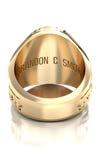 Nuestros asequibles anillos “Básicos” prediseñados presentan la mascota, el símbolo y el color de piedra preseleccionado de su escuela. Grabe sus iniciales en la banda interior para que sea oficialmente suya.