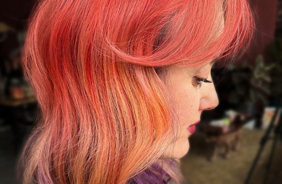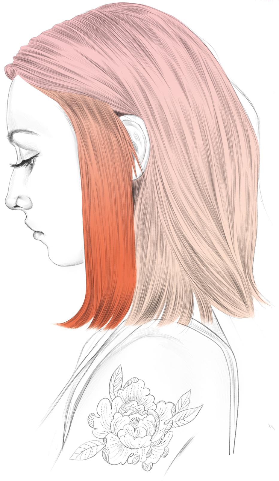 To create a seamless gradation of color, use a color brush to apply the color, and then follow with your fingers to gently overlap your shades. This creates a subtle blend without creating mechanical damage by frequently combing.