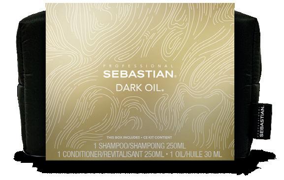 COMPREND : 1 shampooing, 250 mL • 1 revitalisant, 250 mL • 1 mini Dark Oil, 30 mL • 1 sac