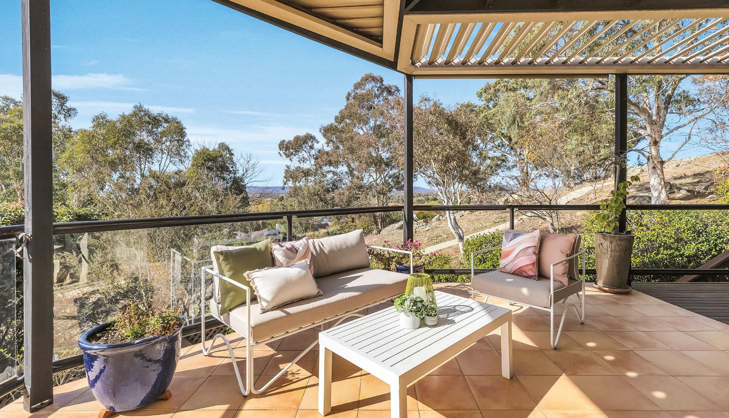 This elevated four-bedroom, threebathroom home boasts updated interiors and panoramic views over the Gungahlin region. The spacious main and fourth bedrooms have en suites and private balconies, while the open kitchendining-living space in the centre of the home features a welcoming combustion fireplace. There are also dedicated spaces for a rumpus room and study. Throw in low-maintenance gardens, and you have the whole package.