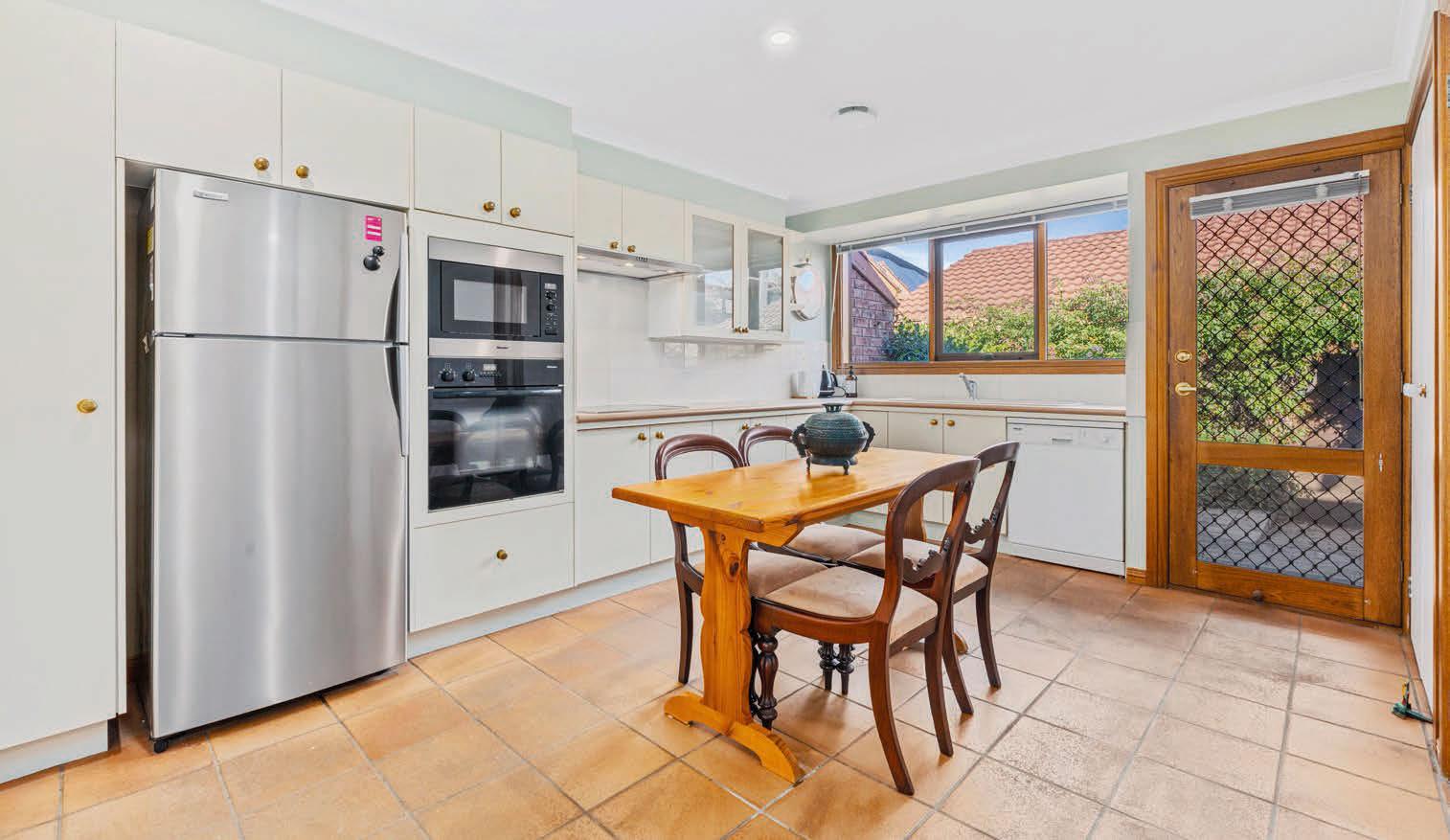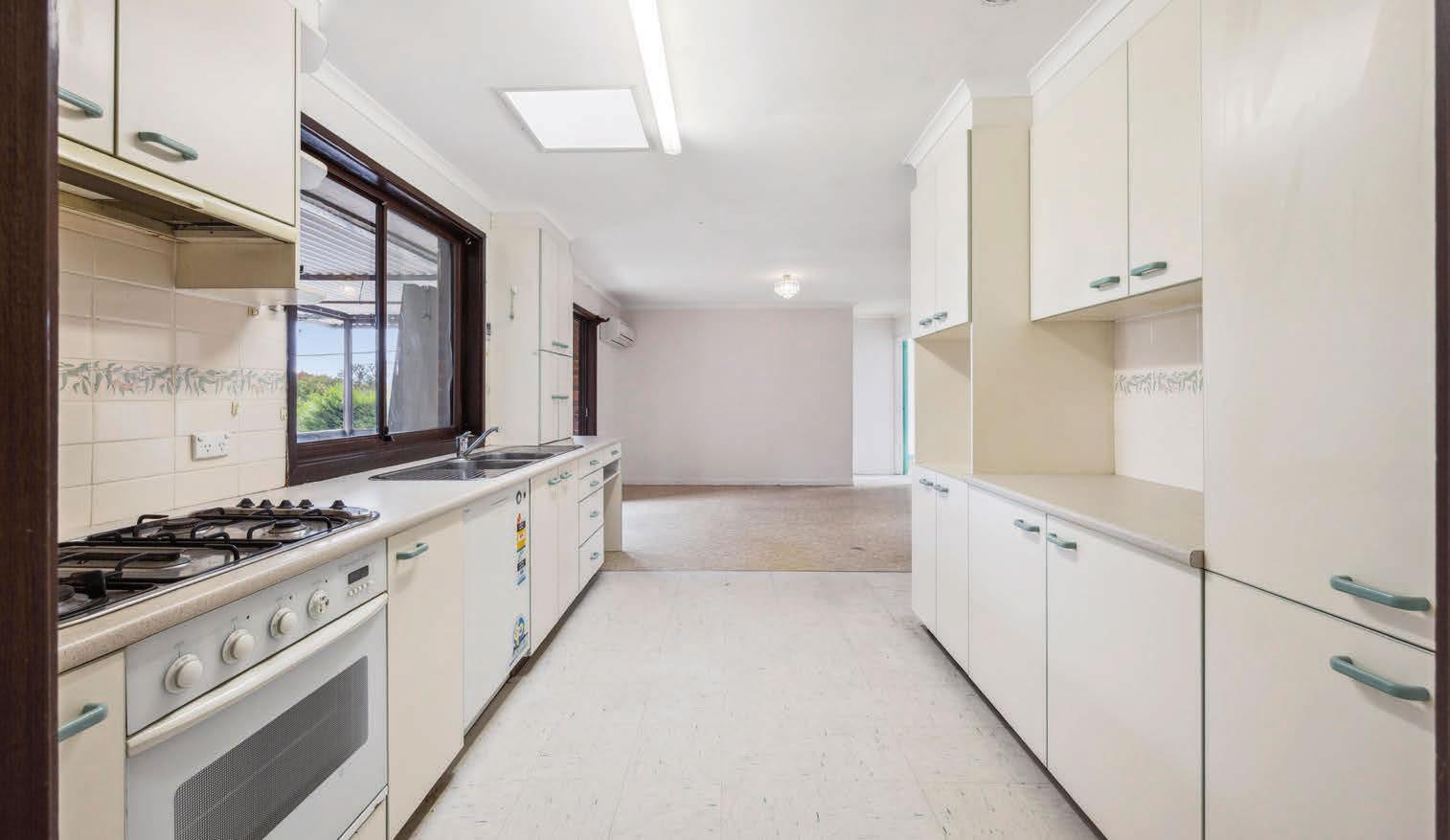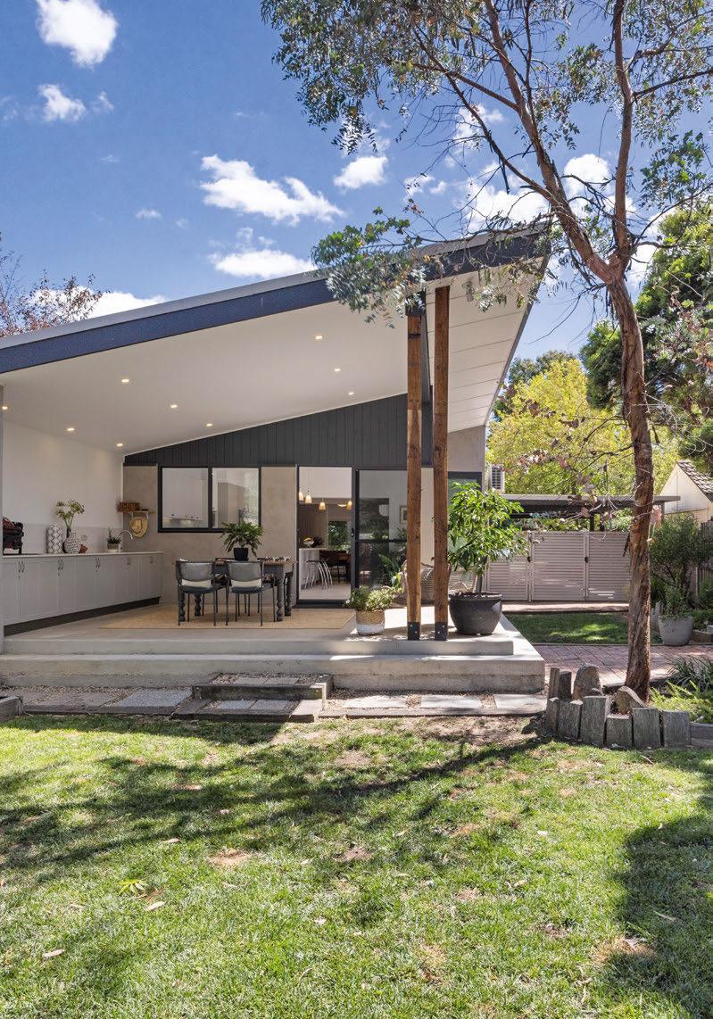 Agent: Solely Properties, Ben James 0448 445 841 Set on a 780-square-metre block, there’s plenty to love about this four-bedroom family home. Timber beams and a woodburning fireplace add charm, while a new galley kitchen, with a Westinghouse oven and induction stovetop, provides a modern touch. The split-level living space features cedar clerestory windows and a leafy outlook over established gardens. “Completing the picture is a substantial backyard with a paved area and deck,” the agent says.