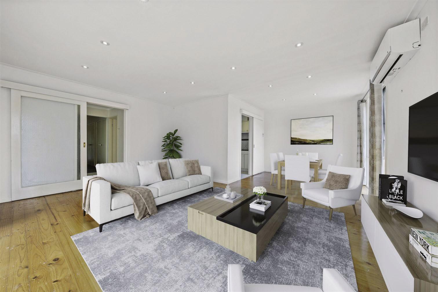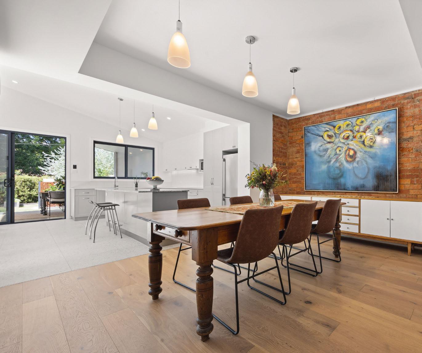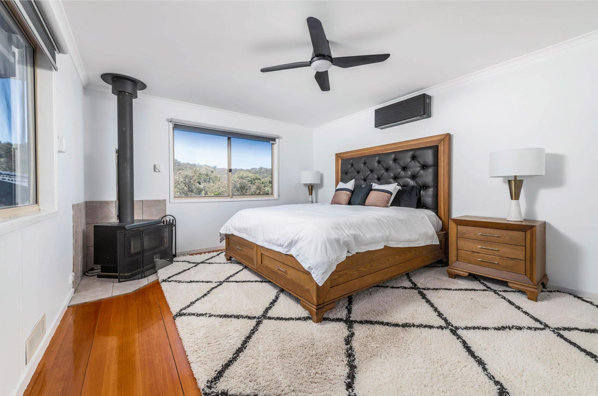 Agent: Solely Properties, Ben James 0448 445 841 Set on a 780-square-metre block, there’s plenty to love about this four-bedroom family home. Timber beams and a woodburning fireplace add charm, while a new galley kitchen, with a Westinghouse oven and induction stovetop, provides a modern touch. The split-level living space features cedar clerestory windows and a leafy outlook over established gardens. “Completing the picture is a substantial backyard with a paved area and deck,” the agent says.