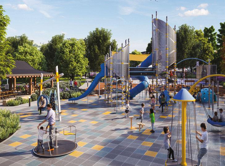 Featuring a splash pad, a learn-to-ride facility, various play spaces, and an outdoor gym, the South Jerra Town Park is scheduled for completion in Autumn of 2025, promising a vibrant space for all ages and abilities.
