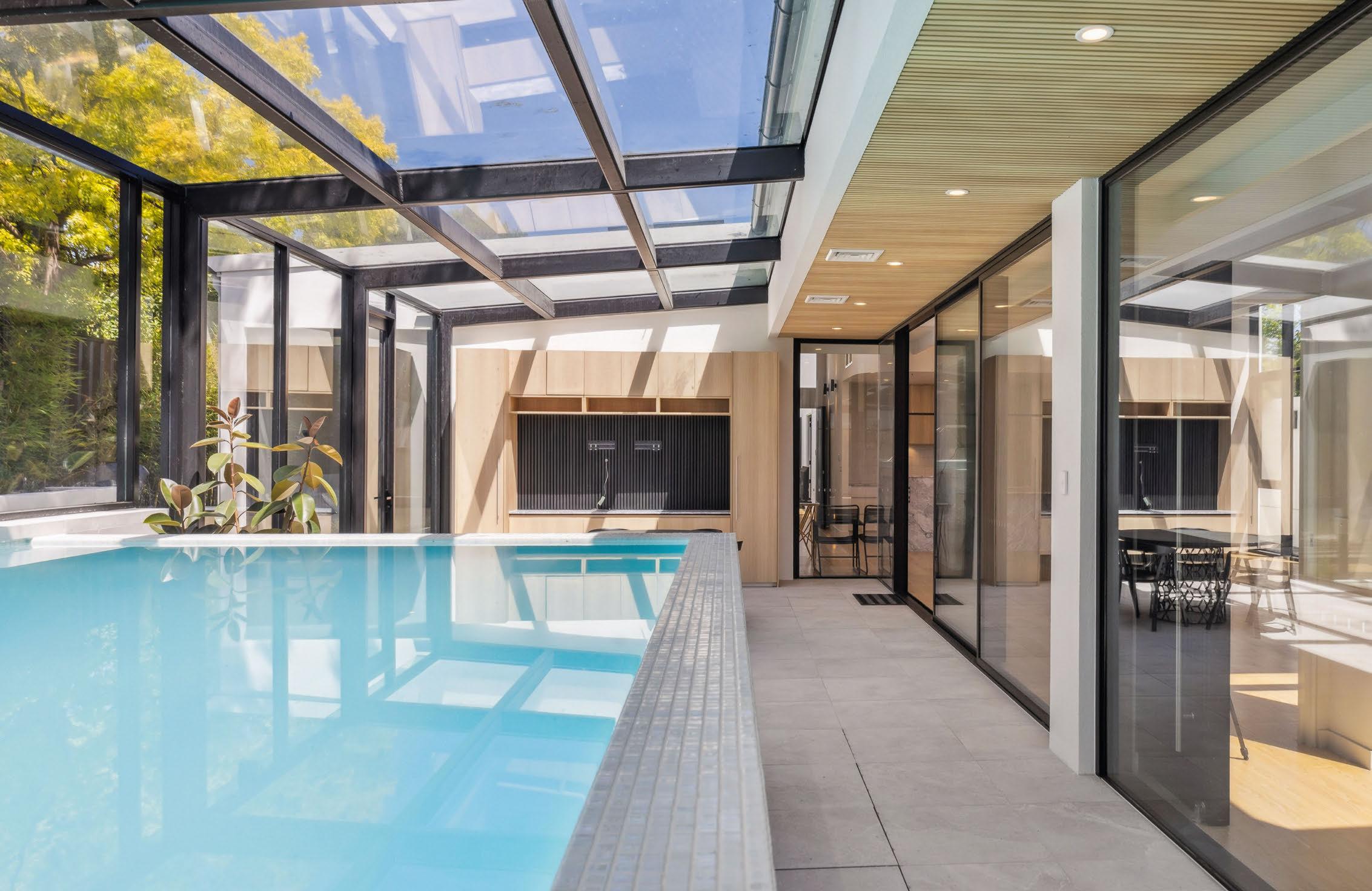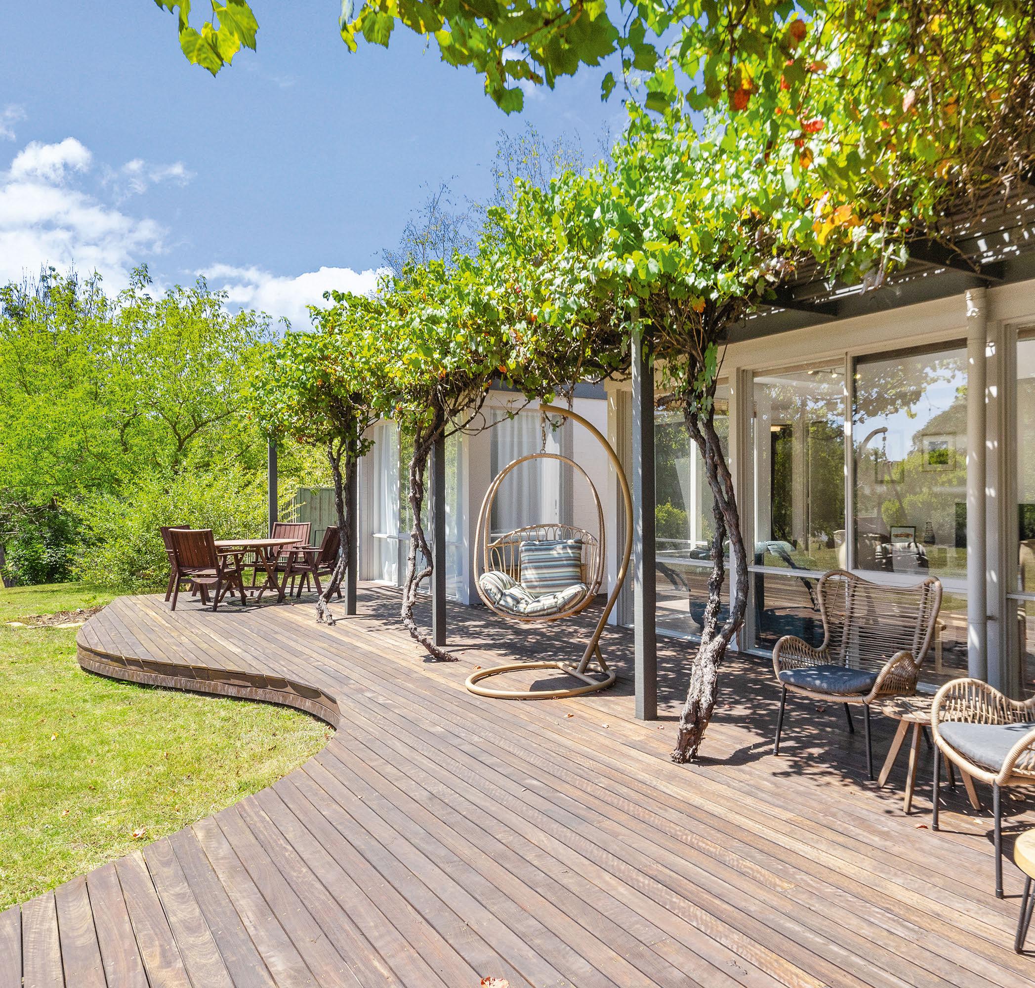 A large deck with overhanging deciduous ornamental grapes provides space for outdoor entertaining –as does the pool and al fresco area. The private sale has a guide of $2.29 million to $2.39 million.