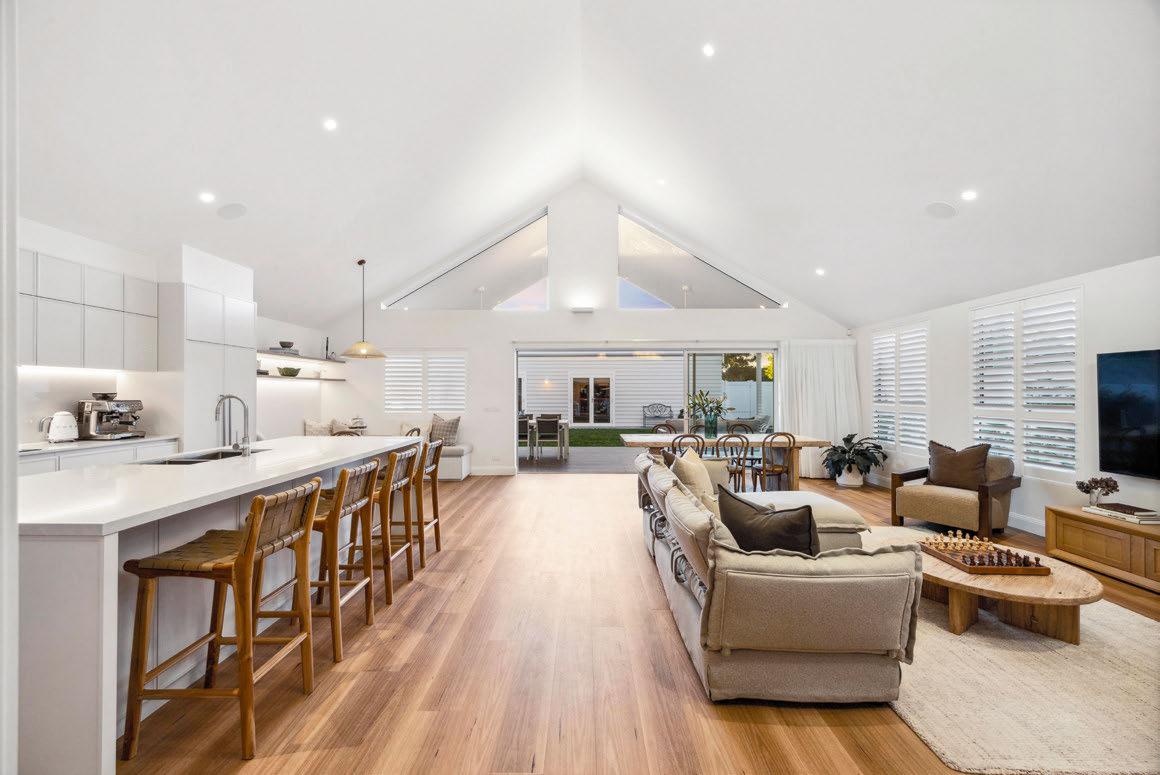 This stylish home’s floor plan offers plenty of versatility. Enter into a large, open-plan kitchen-dining-living hub with sliding doors to a deck. This floor includes the main bedroom and en suite as well as access to apartment-style accommodation with a kitchenette, mealsliving space, bathroom and bedroom. The balance of the bedrooms and bathrooms are upstairs. “This stunning property offers the perfect blend of space and convenience,” the agent says.