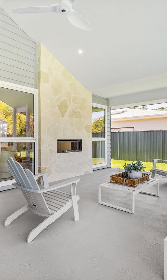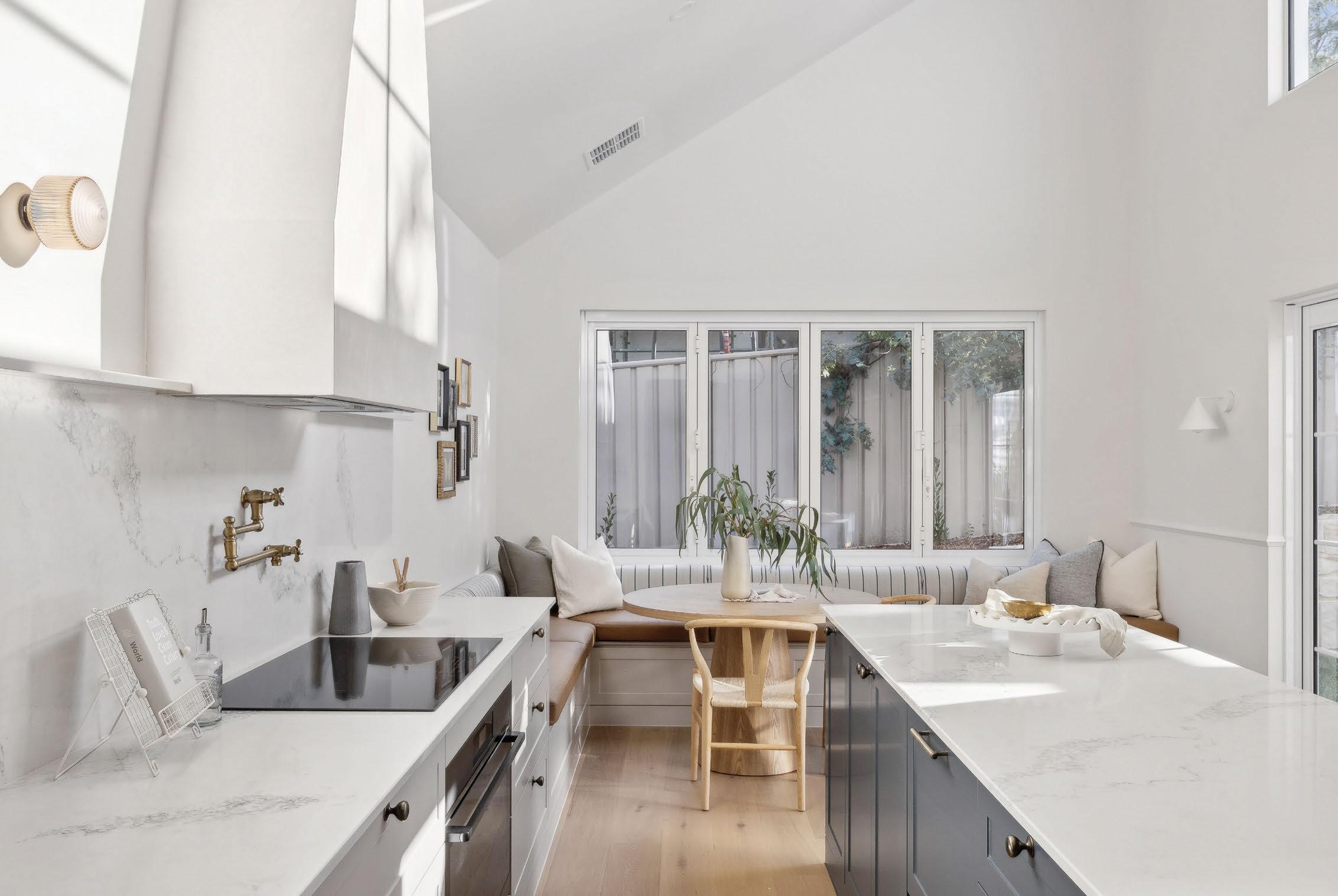 Inside, every element feels carefully considered, from the designer marble bathrooms with statement brass tapware to the custom joinery and serene mainbedroom suite with a daybed nook.