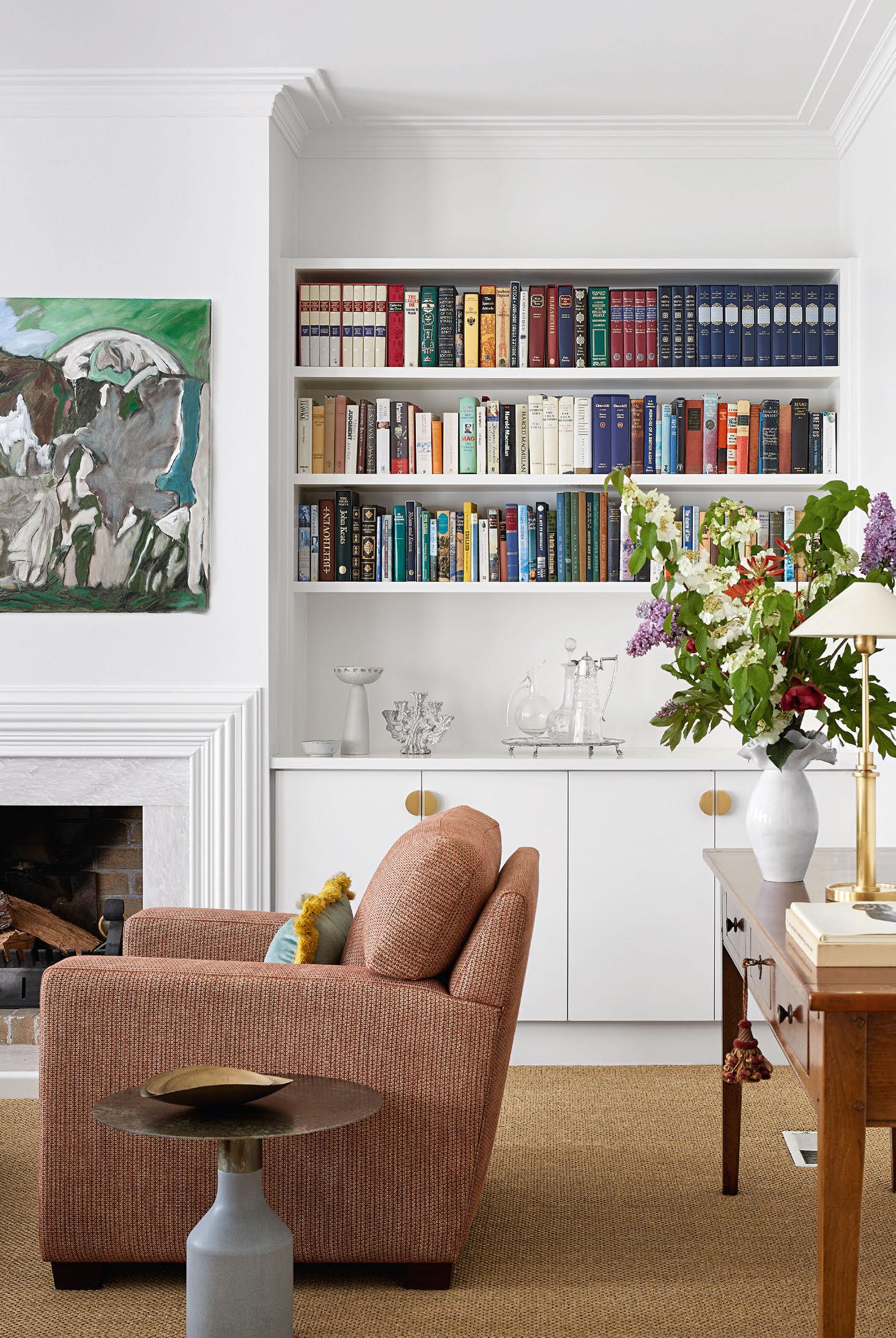 In an Armadale townhouse project, Lackmann ordered a contemporary upscale of current furniture, removing the hefty arms on old Moran chairs and reupholstering them in a rosy tweed.