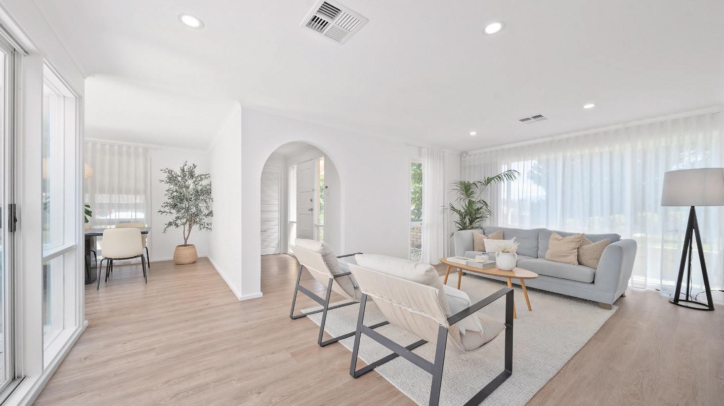 ceiling, soaring hallway void and feature pendant lighting flood the home with light and volume, while premium engineered timber floors and pure wool carpets add warmth and texture.