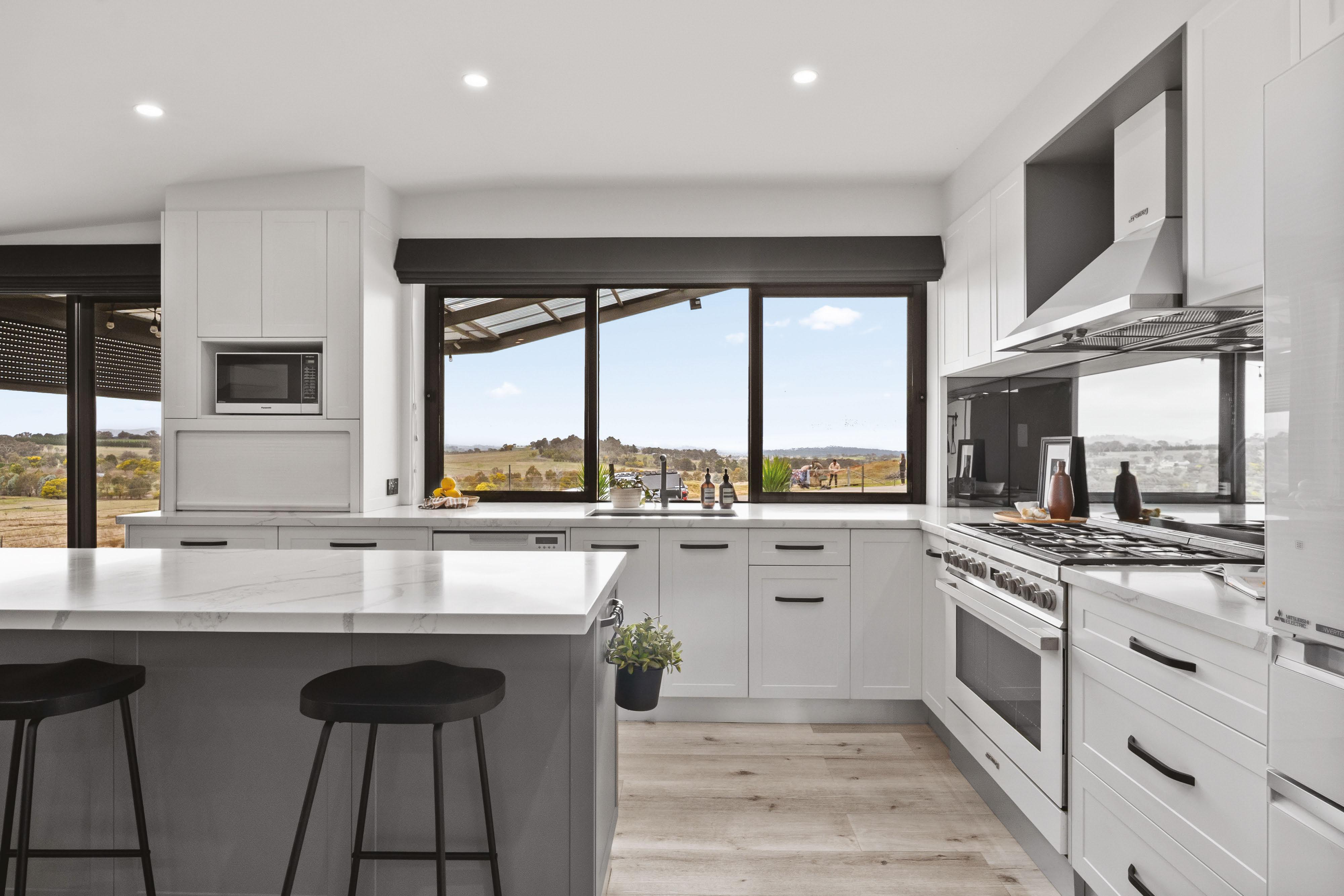 Precision craftsmanship defines this Googong home, from the pendant lighting over the kitchen island to the striking timber and glass staircase that guides you upstairs. The upper level reveals a spacious open-plan living area – warmed by a cosy fireplace – that flows onto a paved patio through large sliding doors. The main-bedroom retreat offers an expansive walk-in wardrobe and a stunning en suite with beautiful timber joinery and a luxurious bath.