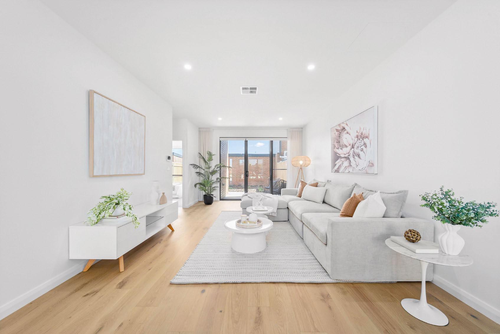 This single-level family house offers great street appeal with modern interiors to match. The spacious floor plan unfolds with an impressive main-bedroom suite at the front, followed by a lounge room and a light-filled living and dining space. Timber joinery and stone benchtops make for a stylish kitchen, while a covered al fresco area overlooking a lowmaintenance backyard and water feature adds to the entertaining options. Close to shops, schools and green spaces.