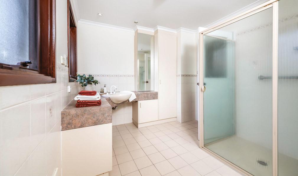 The four bedrooms are spacious, but the main-bedroom suite sits in a league of its own with a walk-in wardrobe and an en suite that features floor-to-ceiling marble tiles and a large shower. The turnkey home is offered for private sale with a guide of $1.35 million to $1.45 million.