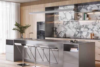 Architecture and design studio Cera Stribley has breathed new life into this single-level Edwardian in Prahran to create a classy, spacious and light-filled home close to schools, transport and High Street. The white stone kitchen with European appliances overlooks the dining and living zone, where steelframed doors extend the living outdoors to the sunny courtyard with a built-in barbecue.