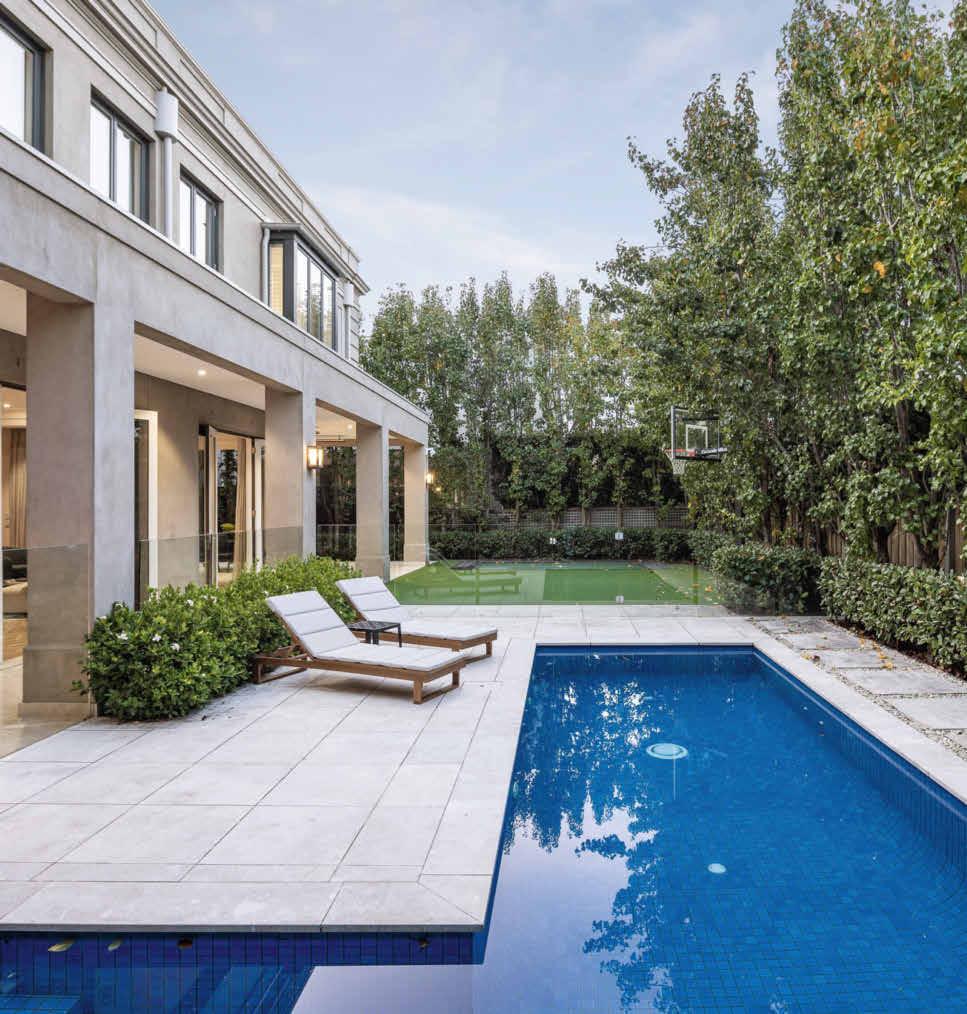 French provincial styling complements elegant family living here. Behind the classic facade, two storeys of immaculately presented spaces include a home office, a lounge room and an open-plan hub. Parquetry floors, European appliances, wine storage and a butler’s pantry enhance the sophisticated ambience. The lounge has a fireplace. Two sets of doors cut a corner between the hub and the protected barbecue terrace. Step out from the terrace to the north-west oriented pool.
