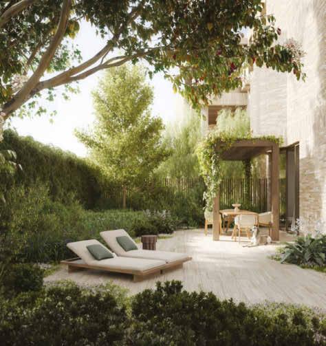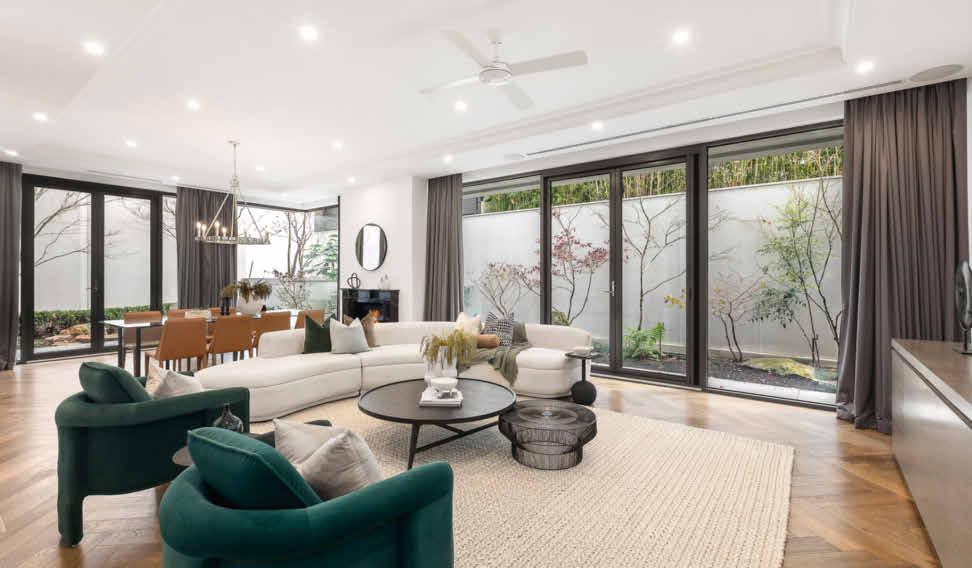 Designed for sophisticated, low-maintenance living, this striking property is a sleek and appealing home with light-filled interiors connecting to a courtyard garden. Its threebedroom, three-bathroom format includes a lift, a stylish kitchen with Gaggenau appliances, oak floorboards and two car parks.