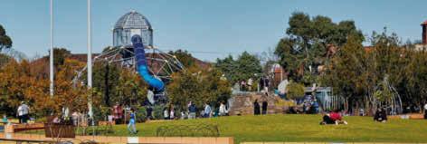 For something more low-key, head to Garden Avenue Reserve with park benches surrounded by palm trees and a shaded orange and blue playground. Explore further around the corner, down Royal Avenue, and you’ll find the communityled Reflection Garden – a great spot for some alone time. Read the hand-painted signs and try your hand watering the flowers and herbs to do your bit.