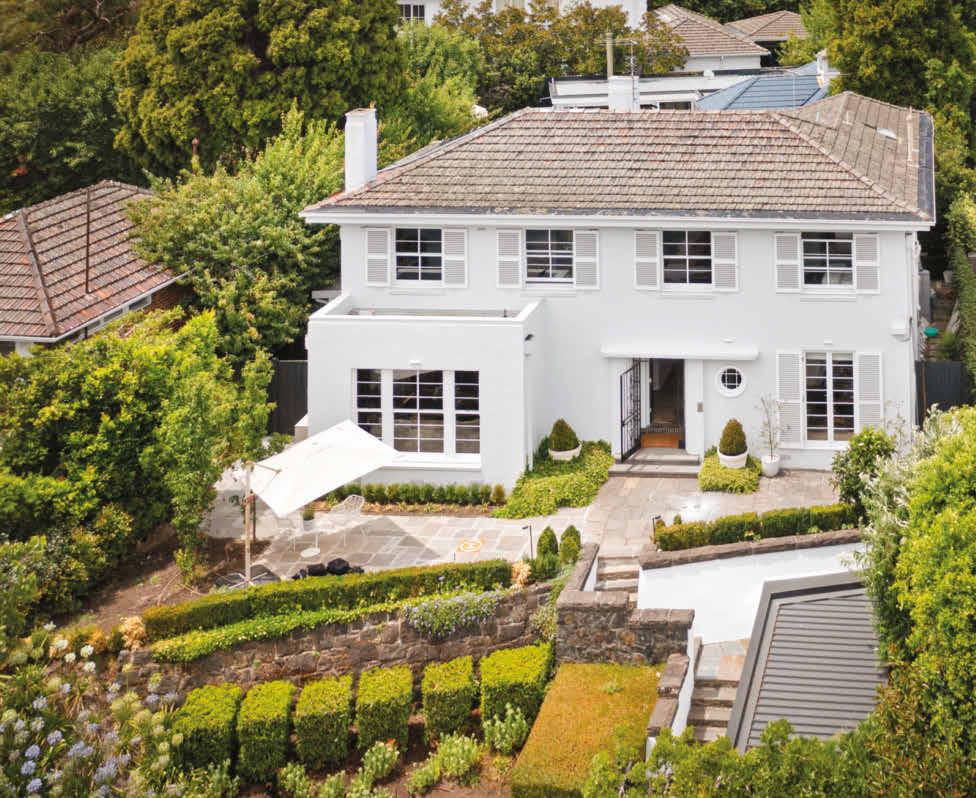 This abode offers family luxury in a beachside locale. The house sits in a formal garden (high hedges and a fountain) and has a gorgeous white facade. The interior has high ceilings, European oak floors and a layout that optimises natural light and space. The bedrooms are on the first floor, while downstairs, a formal lounge room and study join an open-plan living-dining area.