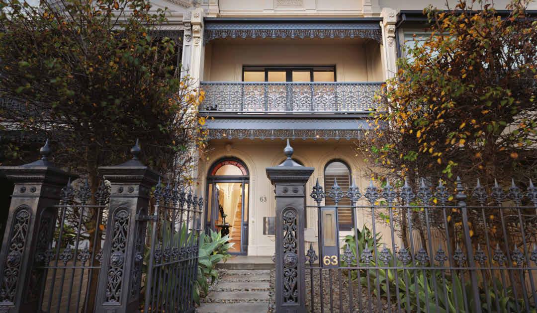 Positioned close to the CBD, Fitzroy Gardens and the MCG precinct, the historic grandeur of this 1864 Victorian terrace is matched by the modern luxury within. An thoughtful redesign has maximised the sunny north-facing rear, with high ceilings, skylights and internal steel-framed doors flooding light through the downstairs living spaces. For al fresco enjoyment, there’s a landscaped terrace with an integrated barbecue, plus two bedrooms have their own balcony.